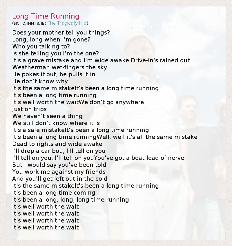 А как ты думаешь, о чем песня "Long Time Running" ?