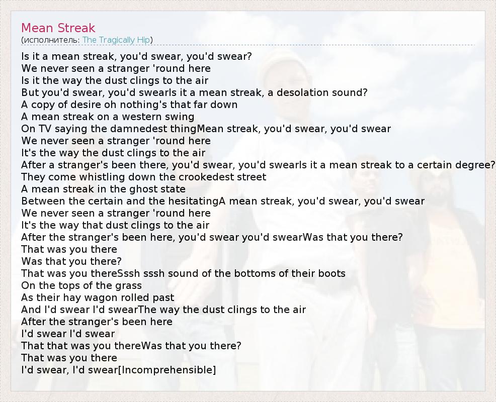 А как ты думаешь, о чем песня "Mean Streak" ?