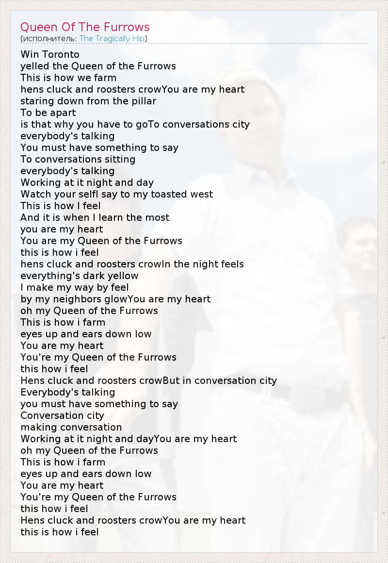 А как ты думаешь, о чем песня "Queen Of The Furrows" ?