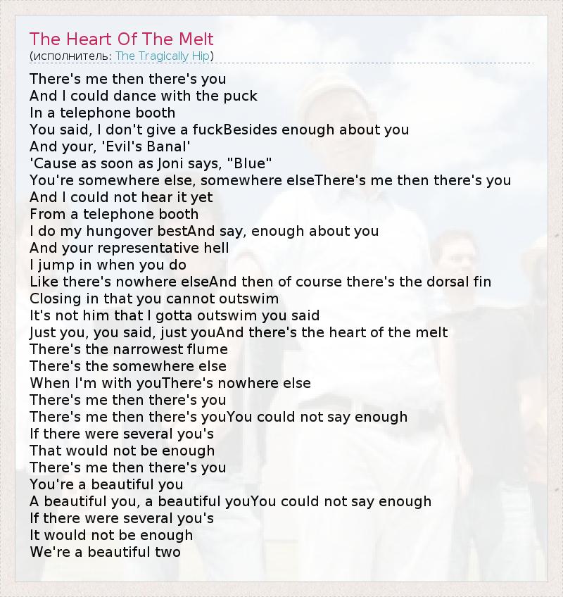 А как ты думаешь, о чем песня "The Heart Of The Melt" ?