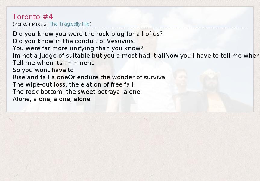 А как ты думаешь, о чем песня "Toronto #4" ?