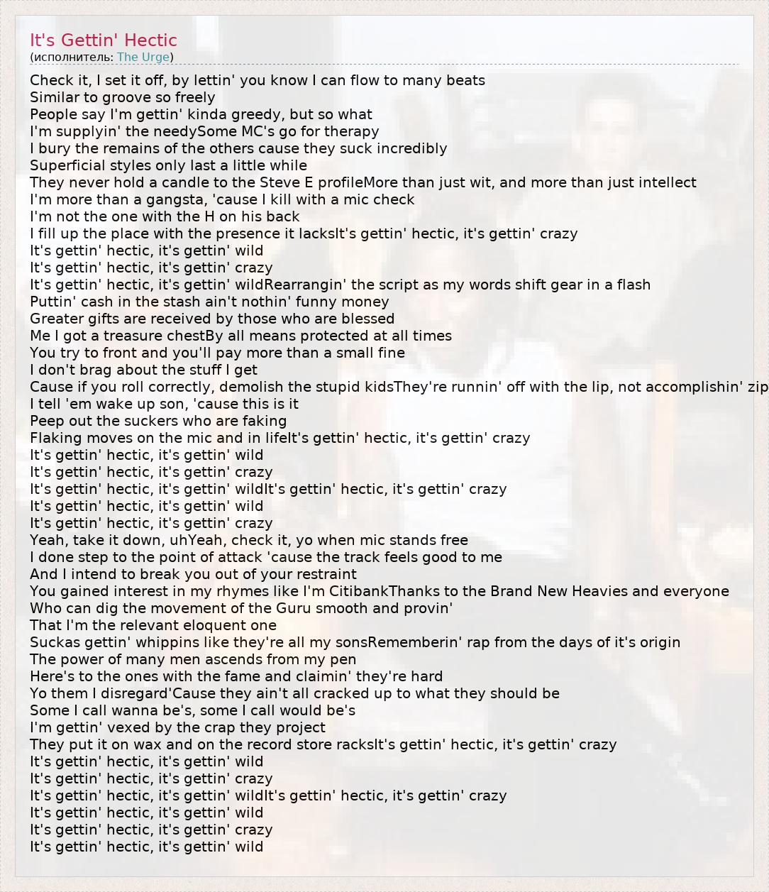 А как ты думаешь, о чем песня "It's Gettin' Hectic" ?