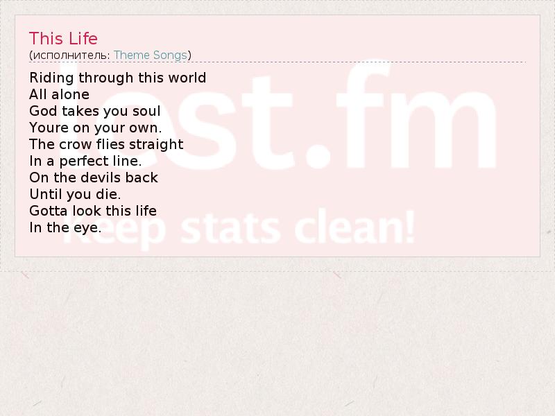 Riding through this world All alone God takes you soul Youre on your own. The crow flies straight In a perfect line. On the devils back Until you die. Gotta look this life In the eye.