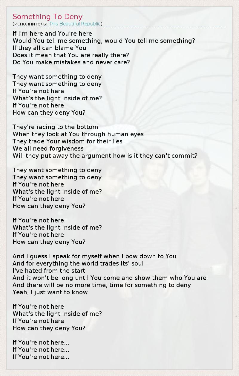 А как ты думаешь, о чем песня "Something To Deny" ?
