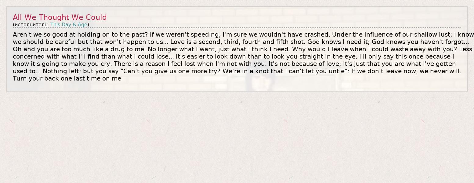 А как ты думаешь, о чем песня "All We Thought We Could" ?