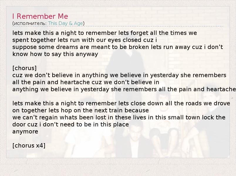 А как ты думаешь, о чем песня "I Remember Me" ?