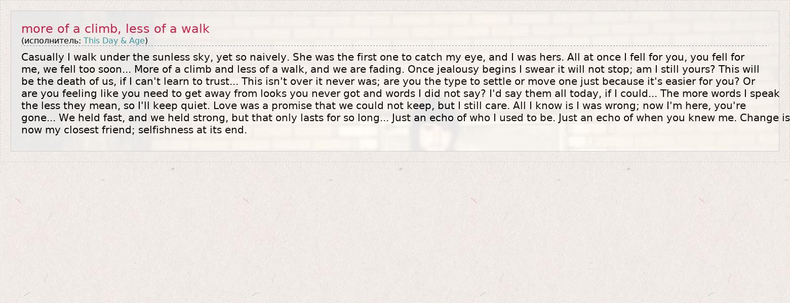 ГлавнаяИсполнителиThis Day & Agemore of a climb, less of a walk