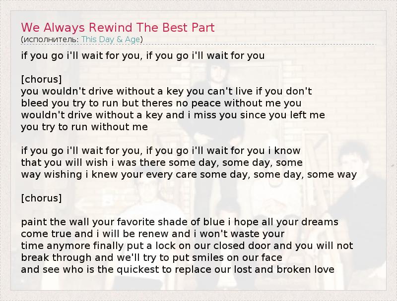 ГлавнаяИсполнителиThis Day & AgeWe Always Rewind The Best Part