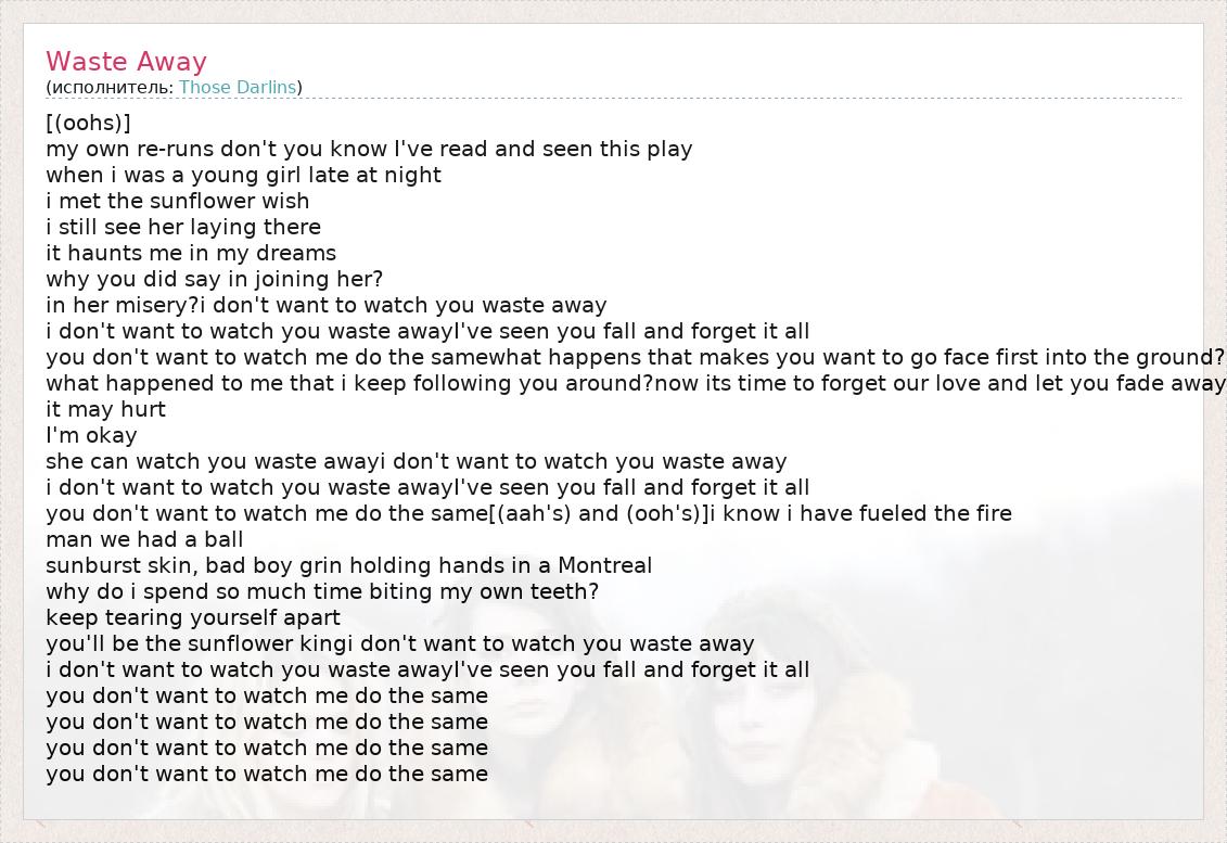 i don't want to watch you waste awayI've seen you fall and forget it all