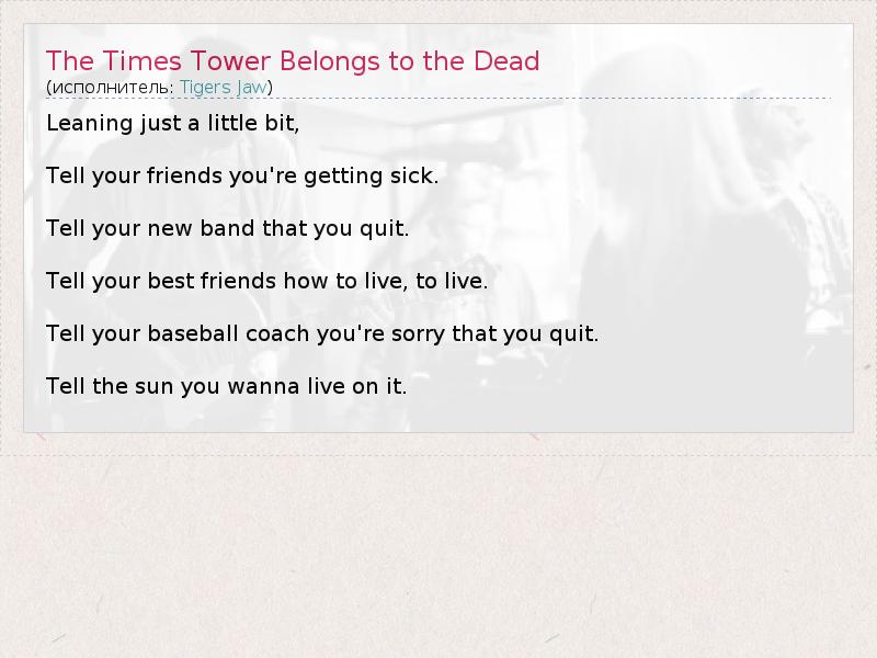 А как ты думаешь, о чем песня "The Times Tower Belongs to the Dead" ?