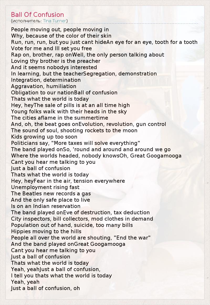 А как ты думаешь, о чем песня "Ball Of Confusion" ?