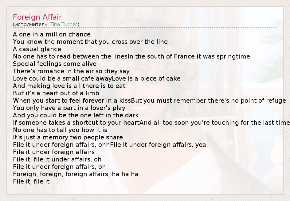 А как ты думаешь, о чем песня "Foreign Affair" ?