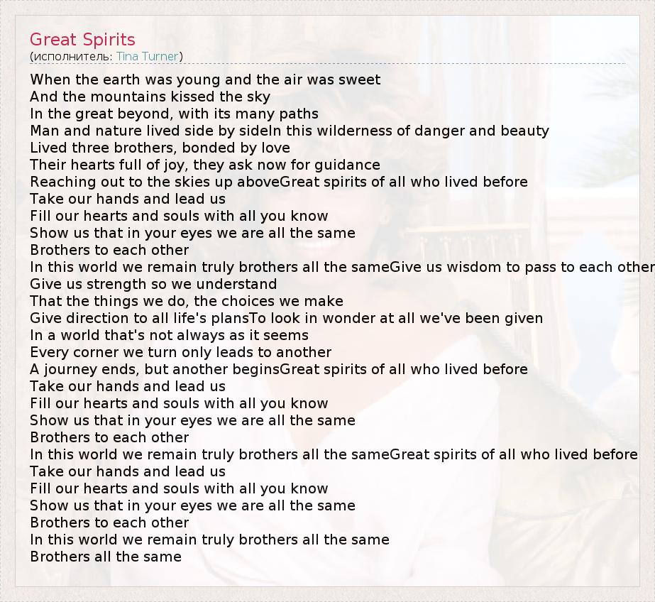 А как ты думаешь, о чем песня "Great Spirits" ?