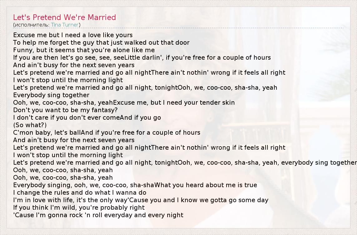 А как ты думаешь, о чем песня "Let's Pretend We're Married" ?