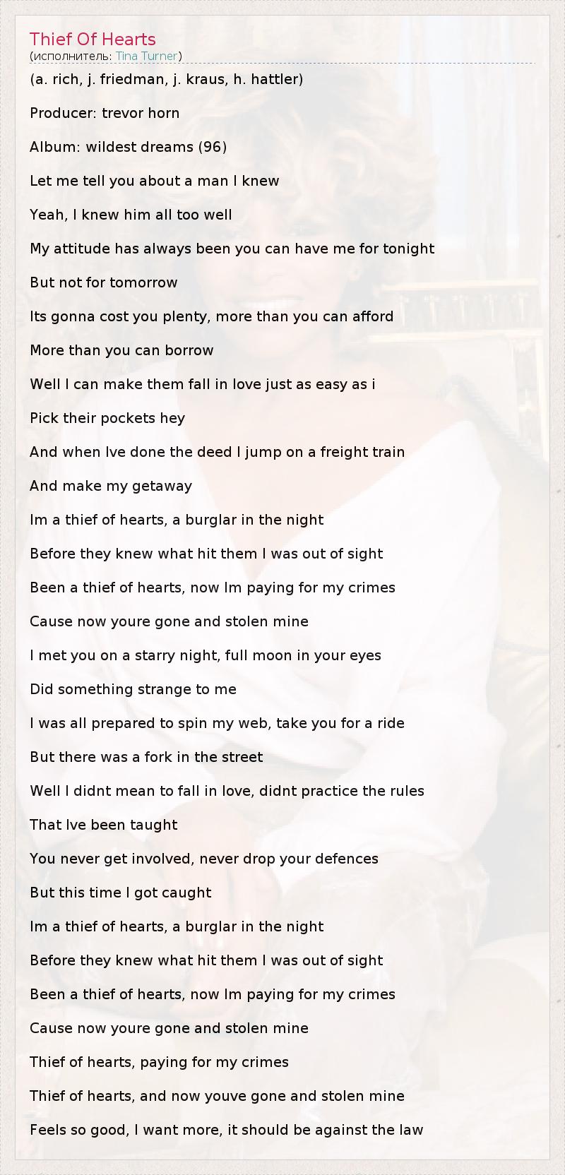 А как ты думаешь, о чем песня "Thief Of Hearts" ?