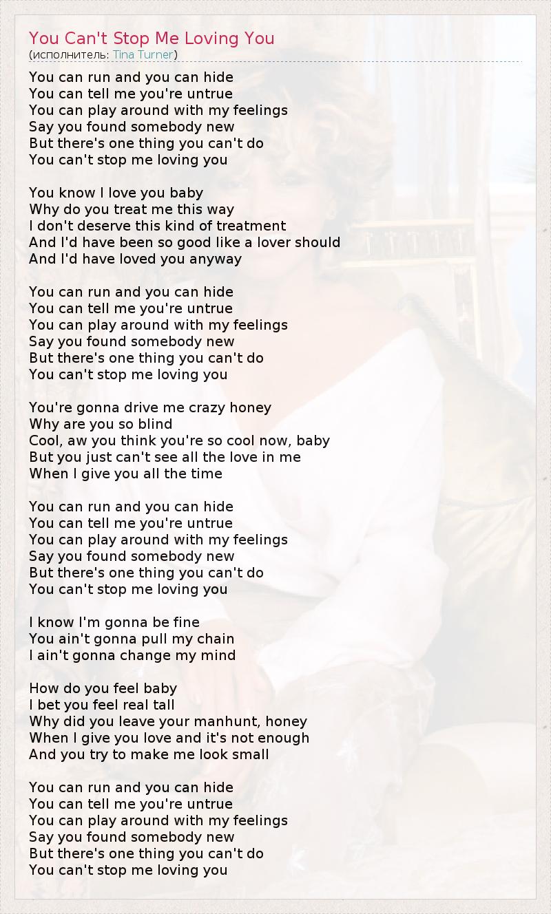 ГлавнаяИсполнителиTina TurnerYou Can't Stop Me Loving You