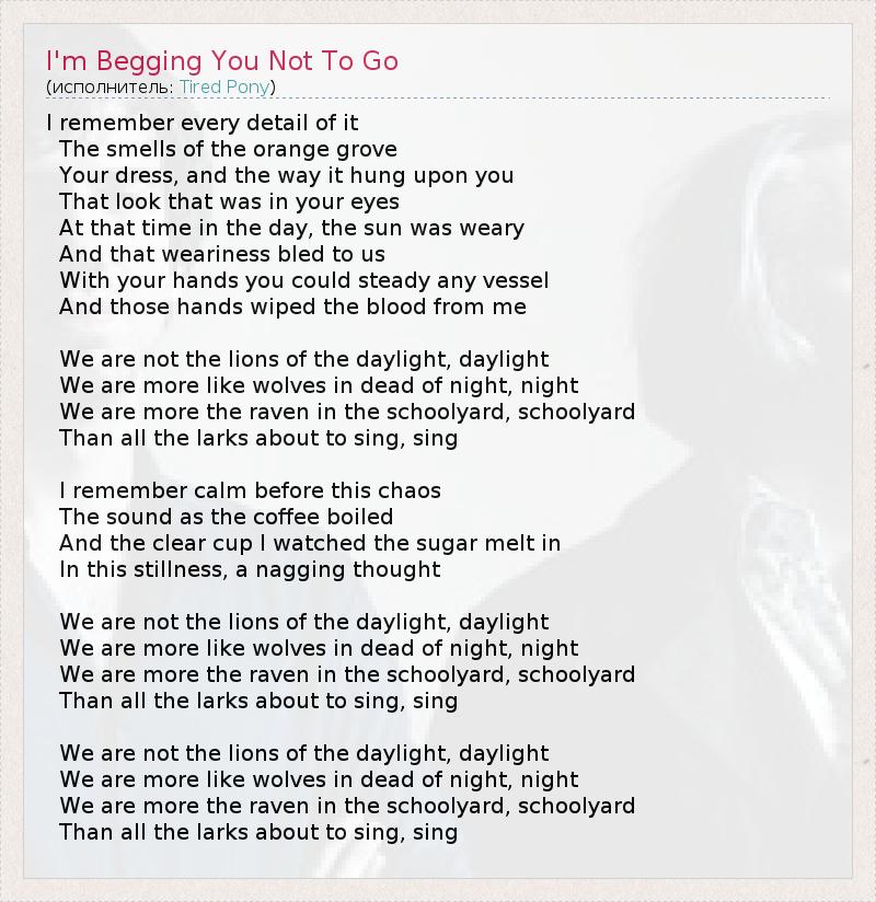 А как ты думаешь, о чем песня "I'm Begging You Not To Go" ?