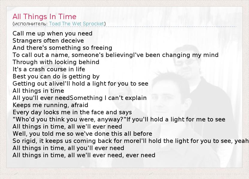 А как ты думаешь, о чем песня "All Things In Time" ?