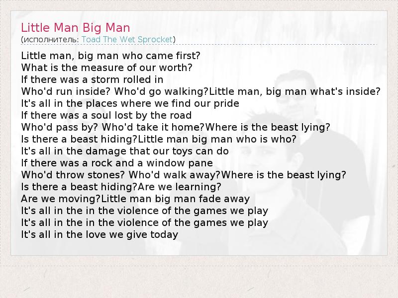 А как ты думаешь, о чем песня "Little Man Big Man" ?