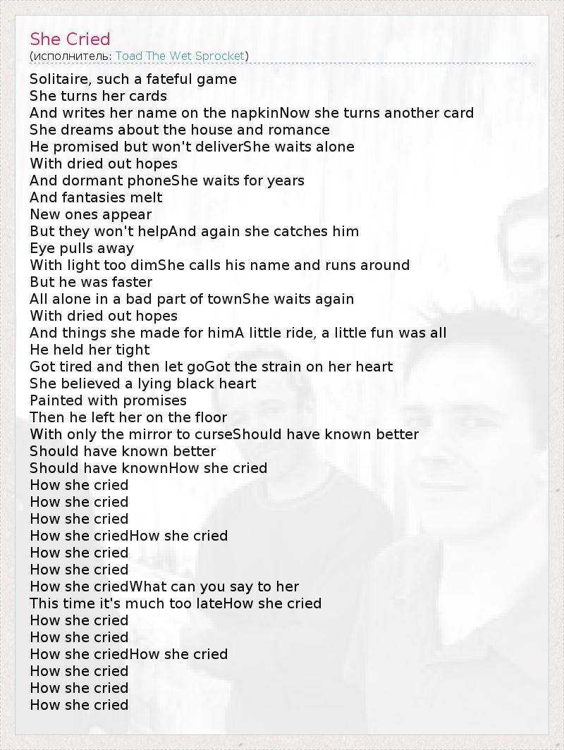 Это интересно:Toad the Wet Sprocket, американская альтернативная поп-рок-группа. Образована в 1986 в Санта-Барбаре, Калифорния. Группа была основана уроженцами Санта-Барбары, один из которых — Дин Диннинг — с рождения имел прямое отношение к музыке (его дядей был известный в 1950-е гг. «хит-мэйкер» Марк «Тин Энджел» Диннинг, Mark «Teen Angel» Dinning). После активных выступлений в городских барах, в 1988 группа записала демо-запись... продолжение