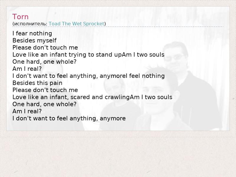 Это интересно:Toad the Wet Sprocket, американская альтернативная поп-рок-группа. Образована в 1986 в Санта-Барбаре, Калифорния. Группа была основана уроженцами Санта-Барбары, один из которых — Дин Диннинг — с рождения имел прямое отношение к музыке (его дядей был известный в 1950-е гг. «хит-мэйкер» Марк «Тин Энджел» Диннинг, Mark «Teen Angel» Dinning). После активных выступлений в городских барах, в 1988 группа записала демо-запись... продолжение