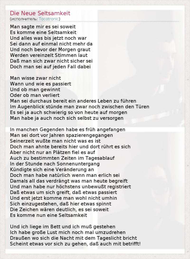 А как ты думаешь, о чем песня "Die Neue Seltsamkeit" ?