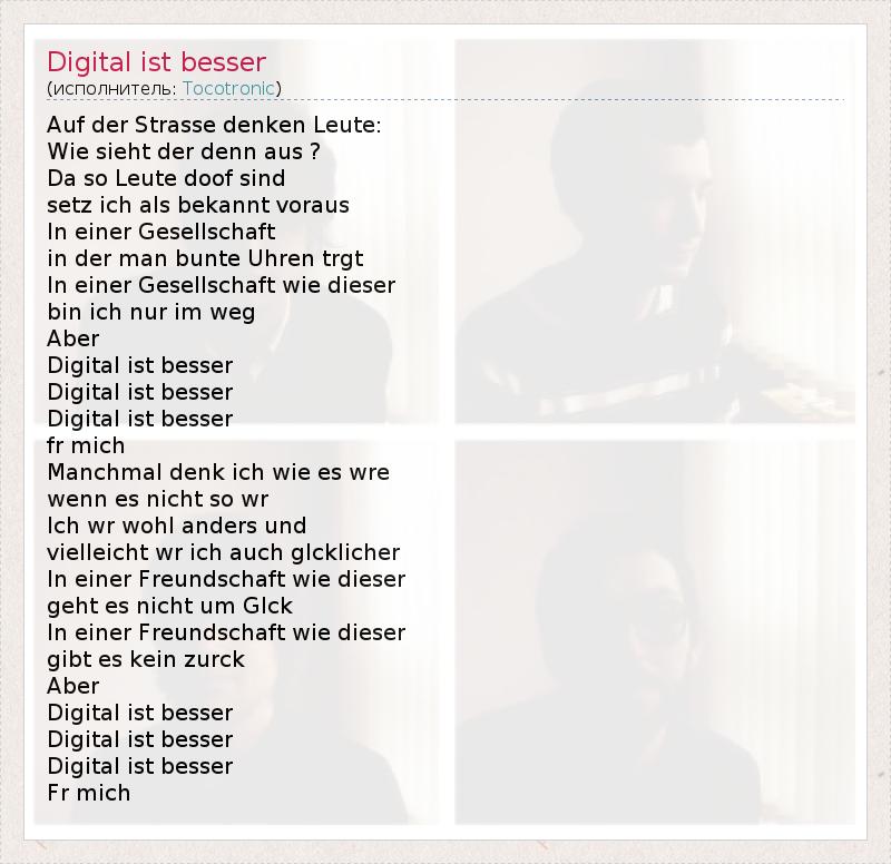 А как ты думаешь, о чем песня "Digital ist besser" ?