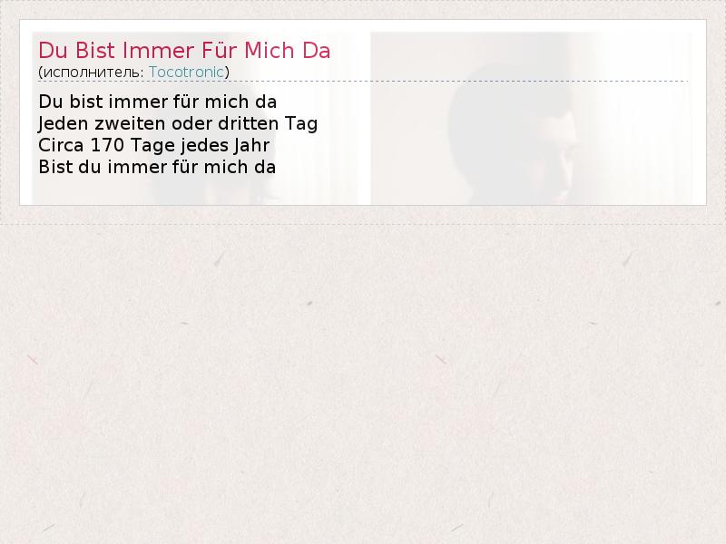 А как ты думаешь, о чем песня "Du Bist Immer Für Mich Da" ?