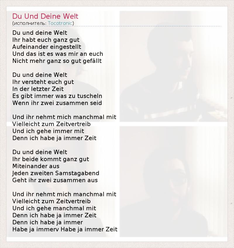 А как ты думаешь, о чем песня "Du Und Deine Welt" ?