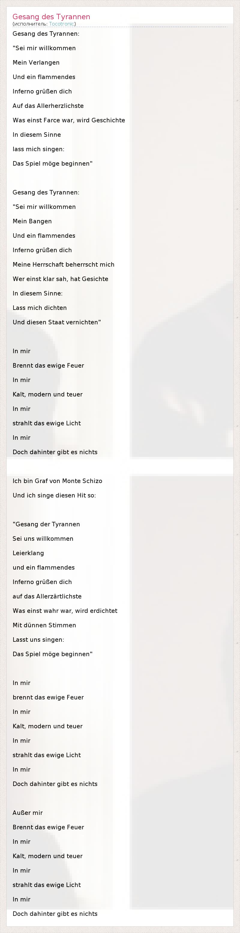 А как ты думаешь, о чем песня "Gesang des Tyrannen" ?