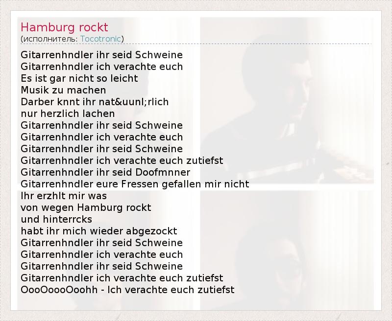 А как ты думаешь, о чем песня "Hamburg rockt" ?