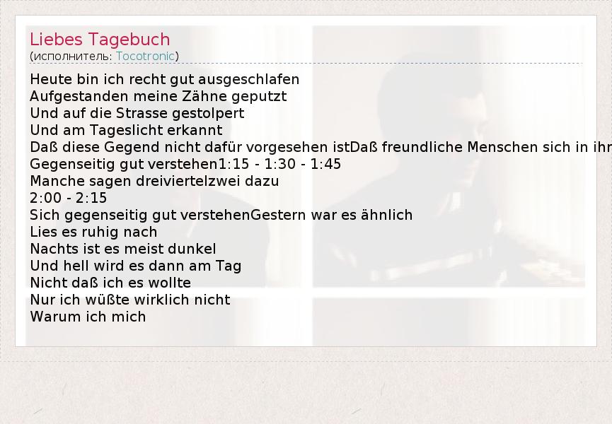 А как ты думаешь, о чем песня "Liebes Tagebuch" ?
