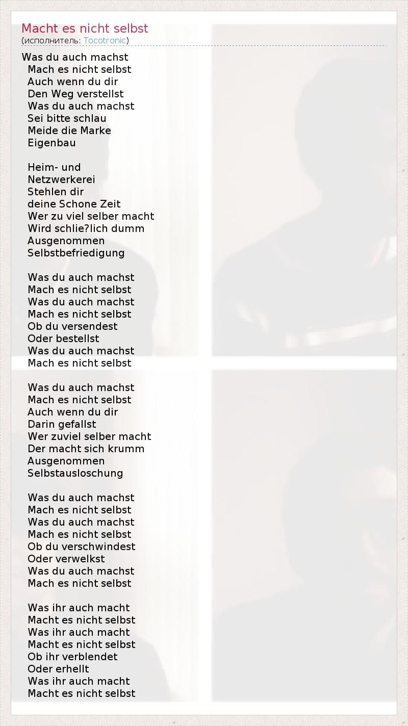 А как ты думаешь, о чем песня "Macht es nicht selbst" ?