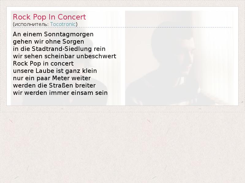 А как ты думаешь, о чем песня "Rock Pop In Concert" ?