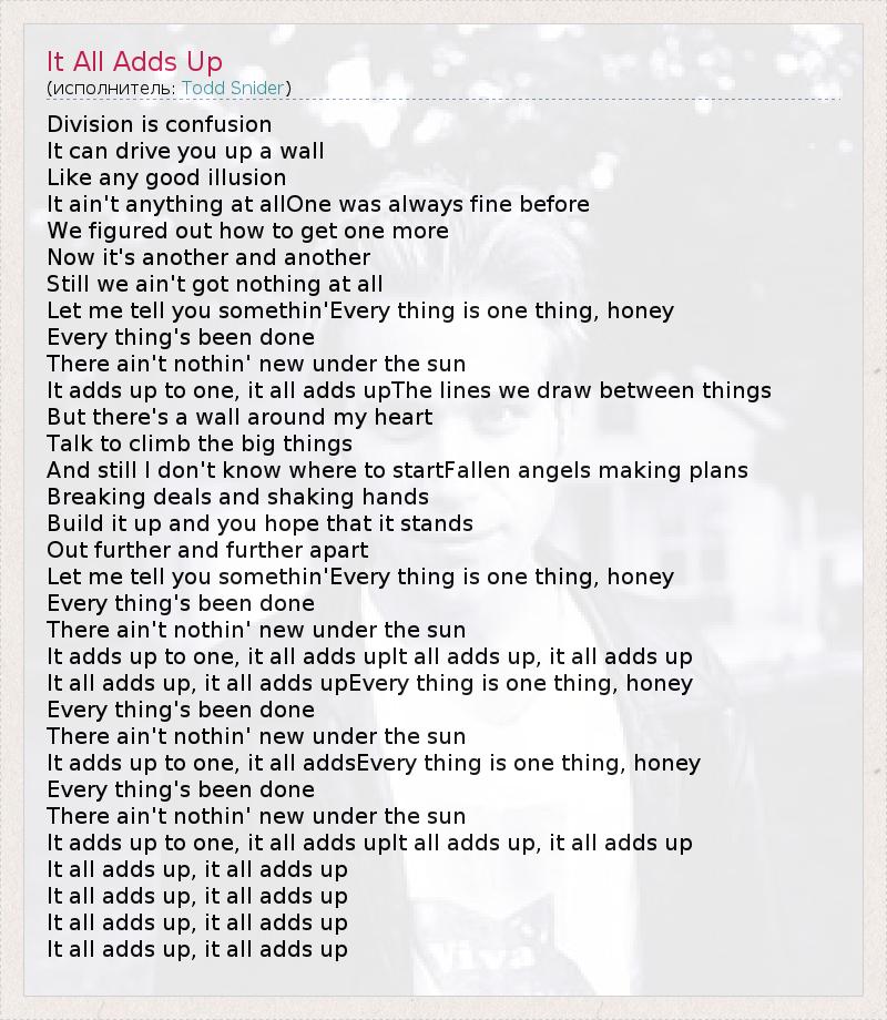 А как ты думаешь, о чем песня "It All Adds Up" ?