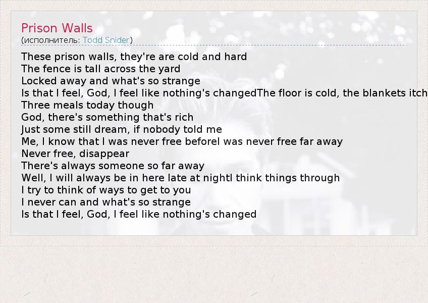 А как ты думаешь, о чем песня "Prison Walls" ?