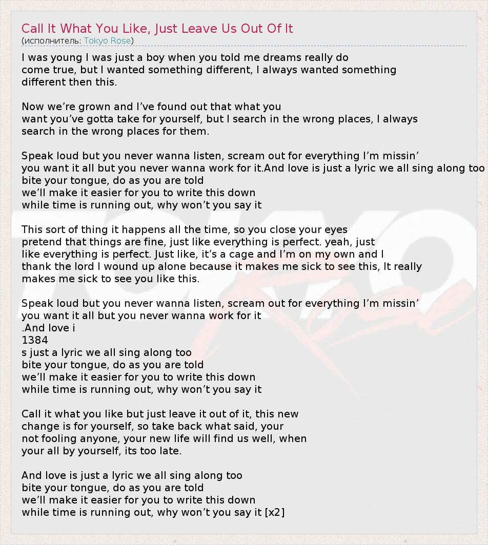 А как ты думаешь, о чем песня "Call It What You Like, Just Leave Us Out Of It" ?