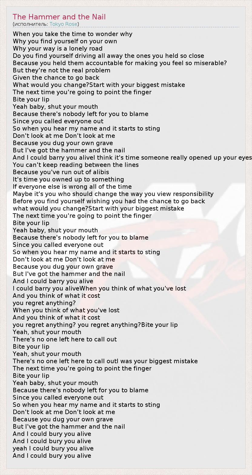 ГлавнаяИсполнителиTokyo RoseThe Hammer and the Nail