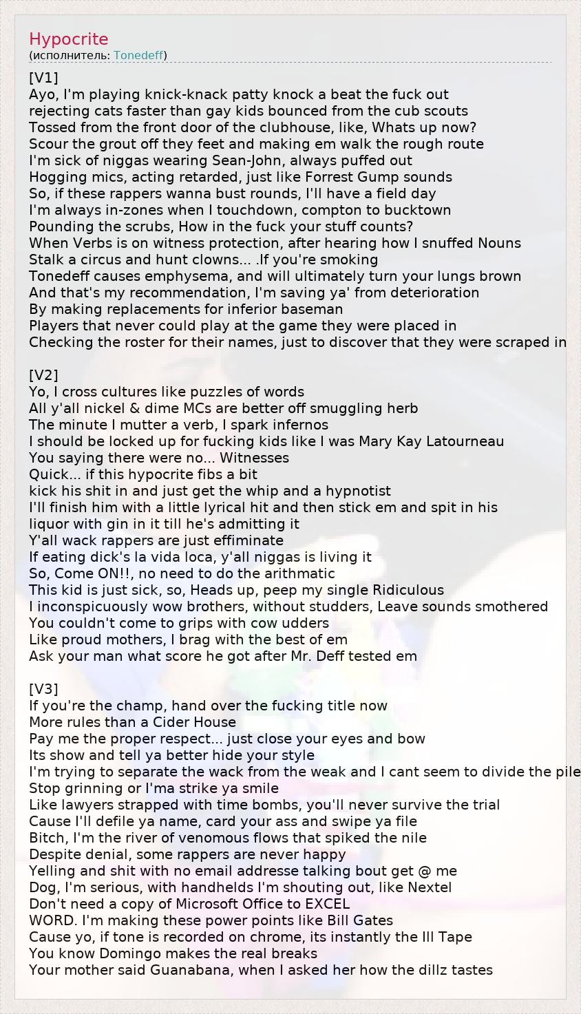 А как ты думаешь, о чем песня "Hypocrite" ?