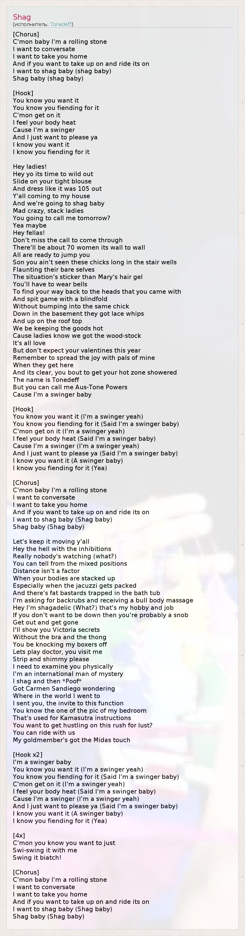 А как ты думаешь, о чем песня "Shag" ?