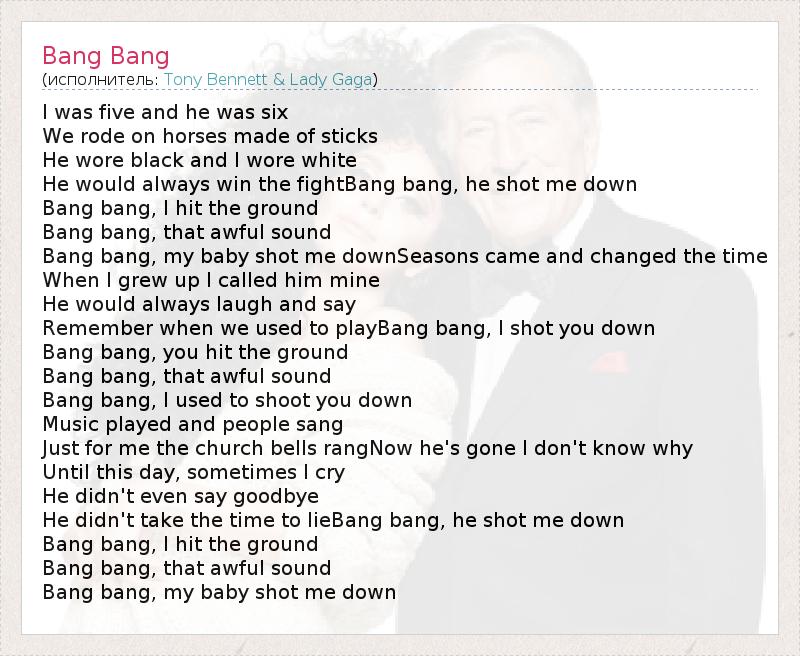 А как ты думаешь, о чем песня "Bang Bang" ?