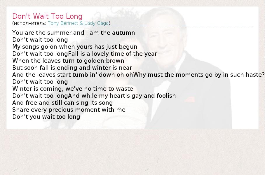 А как ты думаешь, о чем песня "Don't Wait Too Long" ?