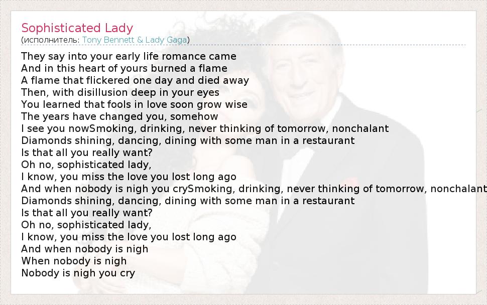 А как ты думаешь, о чем песня "Sophisticated Lady" ?