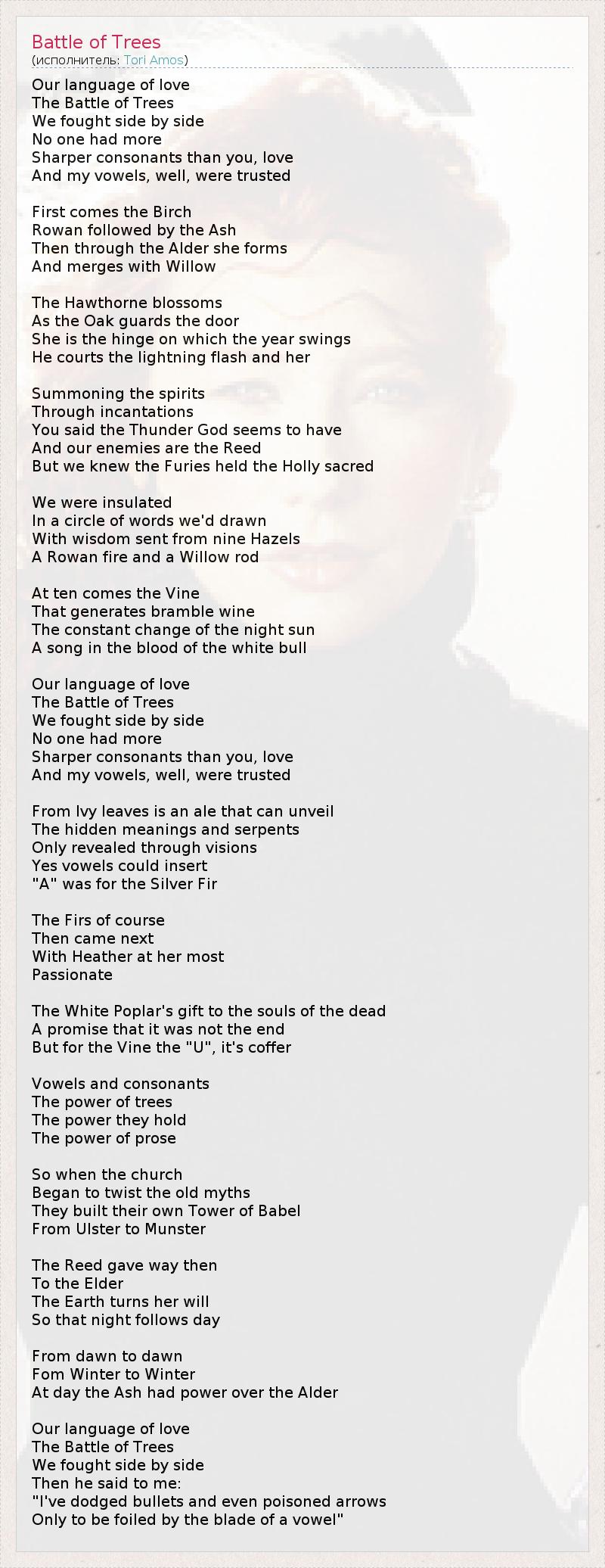 А как ты думаешь, о чем песня "Battle of Trees" ?