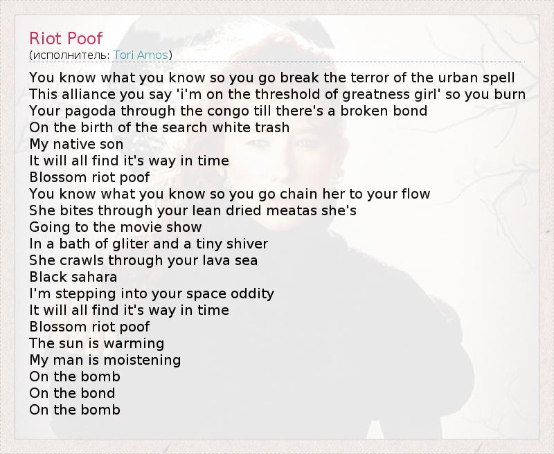 А как ты думаешь, о чем песня "Riot Poof" ?
