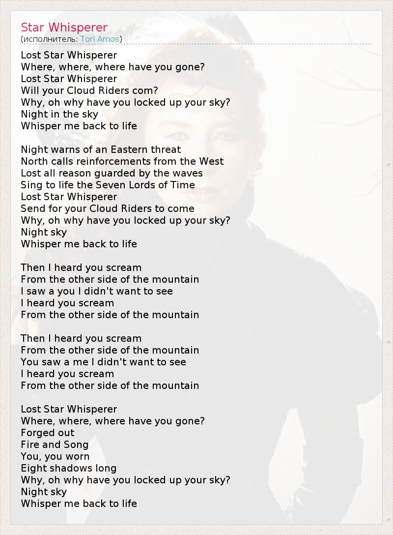 А как ты думаешь, о чем песня "Star Whisperer" ?
