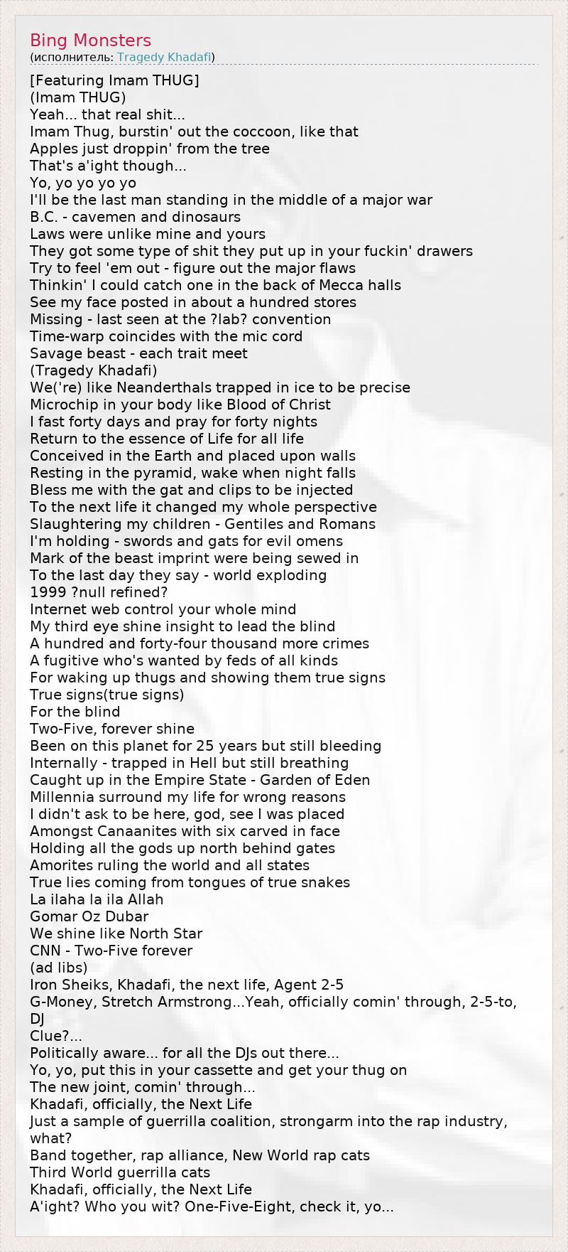 А как ты думаешь, о чем песня "Bing Monsters" ?