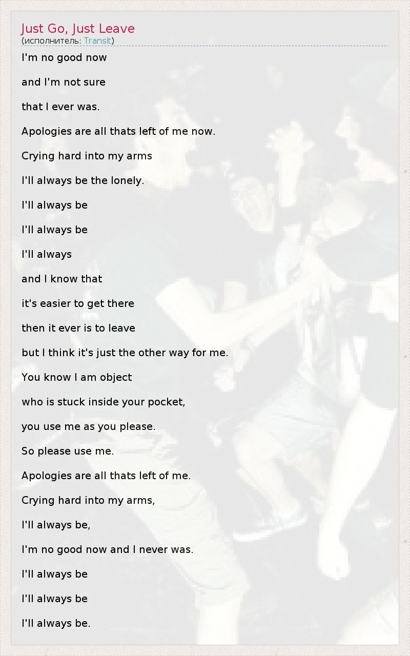 А как ты думаешь, о чем песня "Just Go, Just Leave" ?