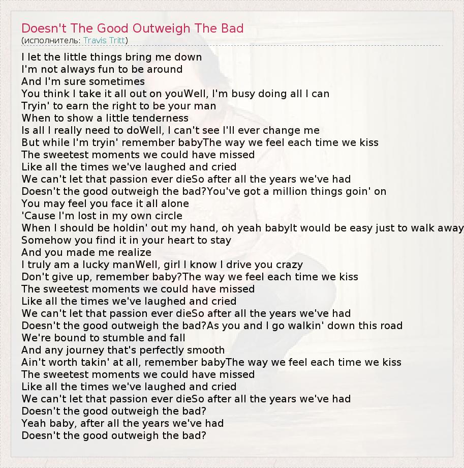 ГлавнаяИсполнителиTravis TrittDoesn't The Good Outweigh The Bad