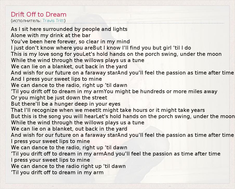 А как ты думаешь, о чем песня "Drift Off to Dream" ?